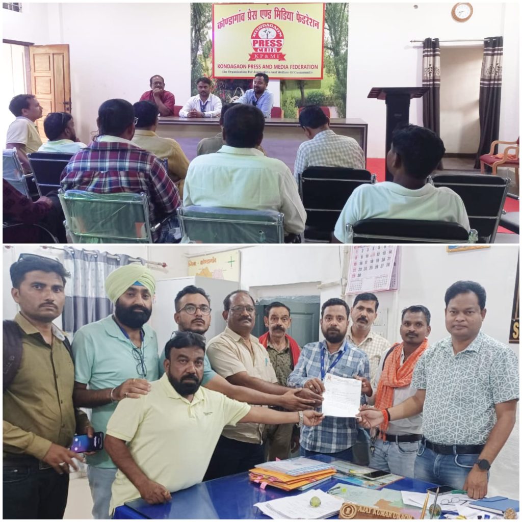कोण्डागांव,ग्राम दण्डवन में पत्रकारों पर हुए हमले के विरोध में 11 जून को कोण्डागांव प्रेस क्लब भवन में एक आपात बैठक आयोजित की गई। बैठक में जिले के पत्रकारों ने एकजुट होकर घटना की तीव्र निंदा की और सर्वसम्मति से निंदा प्रस्ताव पारित किया गया। इसके साथ ही 12 जून को पत्रकारों ने एसडीएम के माध्यम से कलेक्टर के नाम ज्ञापन सौंपा।