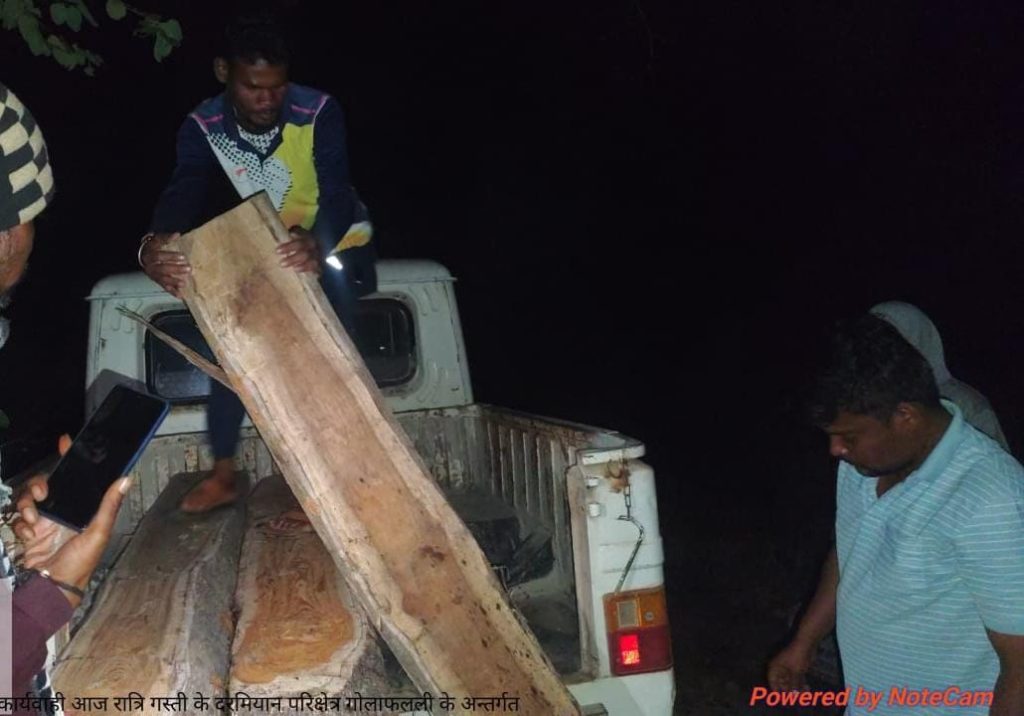 *गोलापल्ली परिक्षेत्र में रात्रि गश्त के दौरान वन विभाग ने सागौन लकड़ी की अवैध गतिविधि पर बड़ी कार्रवाई की है।*