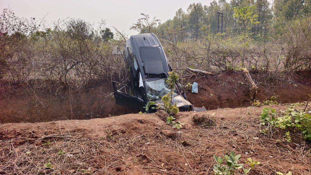 आड़ावाल–मारेंगा बाईपास मार्ग पर दर्दनाक हादसा, इनोवा कार नाले में जा घुसी